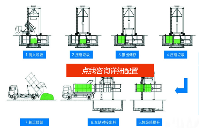設(shè)有垃圾儲存箱,適合集裝箱式散裝垃圾運輸車卸料,減少運輸費用。