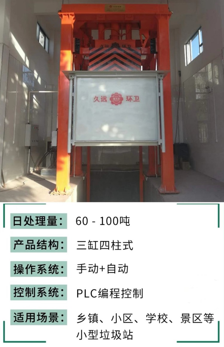 垂直式垃圾壓縮設(shè)備在原立式壓縮站的基礎(chǔ)上將單杠直壓變?yōu)槿淄瑝?,大大降低了房屋高度,科技含量高;采?2只液壓油缸控制運(yùn)行,操作更加靈活簡(jiǎn)便,性能穩(wěn)定。該產(chǎn)品適用于城鎮(zhèn)生活垃圾的儲(chǔ)存、壓縮和轉(zhuǎn)運(yùn),通??稍O(shè)置在靠近街道及居民生活小區(qū)內(nèi),是當(dāng)今生活垃圾處理的理想設(shè)備。
