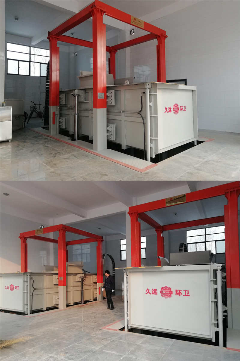 JY-3160 水平式四柱舉升垃圾壓縮設(shè)備是將垃圾的卸(出)料、壓縮、儲存集合在一起,利用地下空間將垃圾密閉在箱體內(nèi),同時配備噴淋降塵除臭系統(tǒng)和污水處理系統(tǒng),徹底解決了垃圾在收集、儲存、裝運過程中的污染環(huán)境、作業(yè)效率低等問題。整個設(shè)計與周圍環(huán)境協(xié)調(diào)裝飾,達到融為一體的效果,使城市面貌更加美觀。